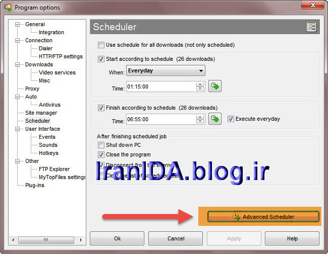 قابلیت برنامه ریزی معمولی دانلود نرم افزار IDA که قبلا توضیح داده شد، مانند هر دانلود منیجر دیگری مثل IDM یا Flashget تنها می توانید یک برنامه ریزی را انجام بدهد، اگر با این محدودیت کارتون راه میفته و یا با برنامه ریزی معمولی دانلود آشنایی ندارید، کافیه به لینک زیر مراجعه کنید: