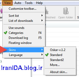 سپس از منوی View در نرم افزار و با استفاده از گزینه Skins می توانید پوسته مورد نظر خود را انتخاب یا تغییر دهید.