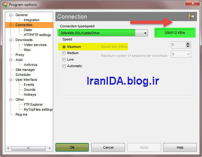 - تنظیمات حداکثر سرعت ممکن دانلود در IDA