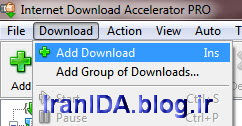 الف. برای دانلود ابتدا لینک دانلود را کپی کنید و سپس از طریق نوار منو Download گزینه Add download کلیک کنید تا پنجره دانلود ظاهر شود.